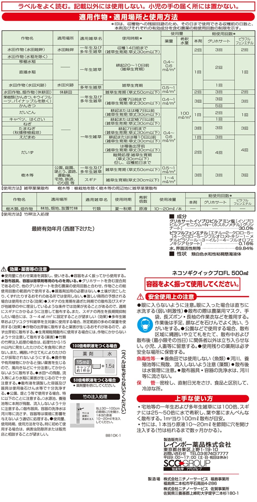- <農薬> レインボー薬品 ネコソギクイックプロFL 500ml
