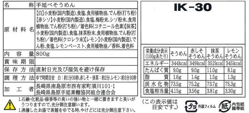 島原手延素麺50g×10束、しそ、抹茶、レモン素麺50g×各2束