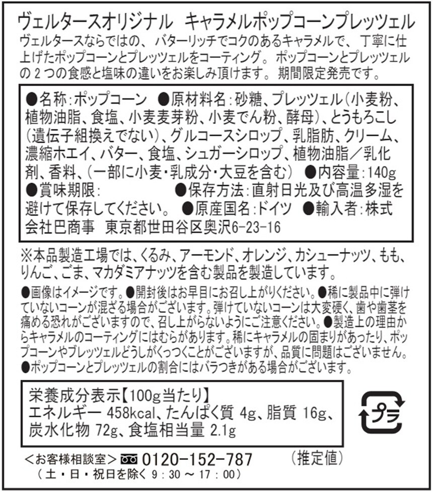 [14個]巴商事 ヴェルタースオリジナル キャラメルポップコーン プレッツェル 140g | リッチなおいしさのヴェルタースのキャラメルをたっぷりとまとわせました