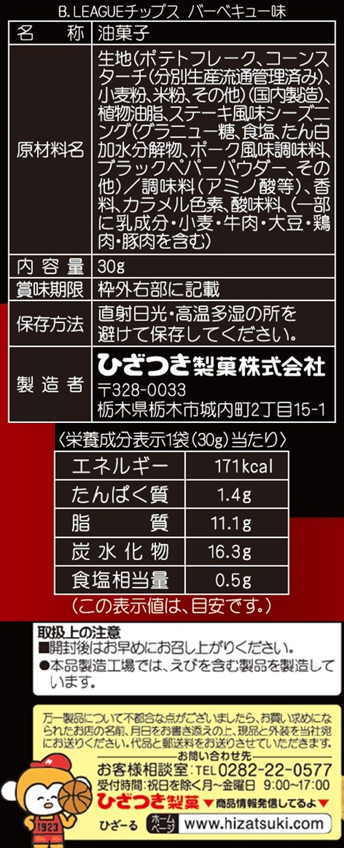 [2種計24個]ひざつき製菓 B.LEAGUEチップス うすしお味 30g / バーベキュー味 30g | プロバスケットボールリーグ「B.LEAGUE」とのコラボ商品第二弾!