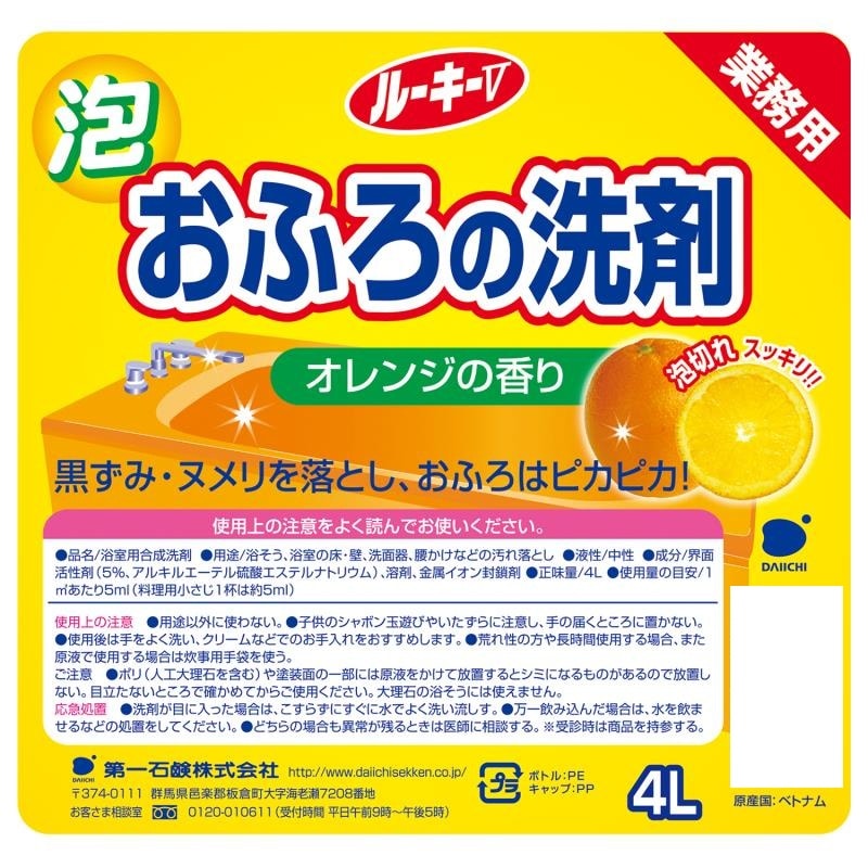 [3個]第一石鹸 ルーキーV おふろの洗剤 4000ml | 黒ずみ・ヌメリを落とし、おふろはピカピカ