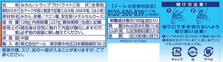 中国産の温州みかんを甘さ控えめのライトシロップに漬けました。