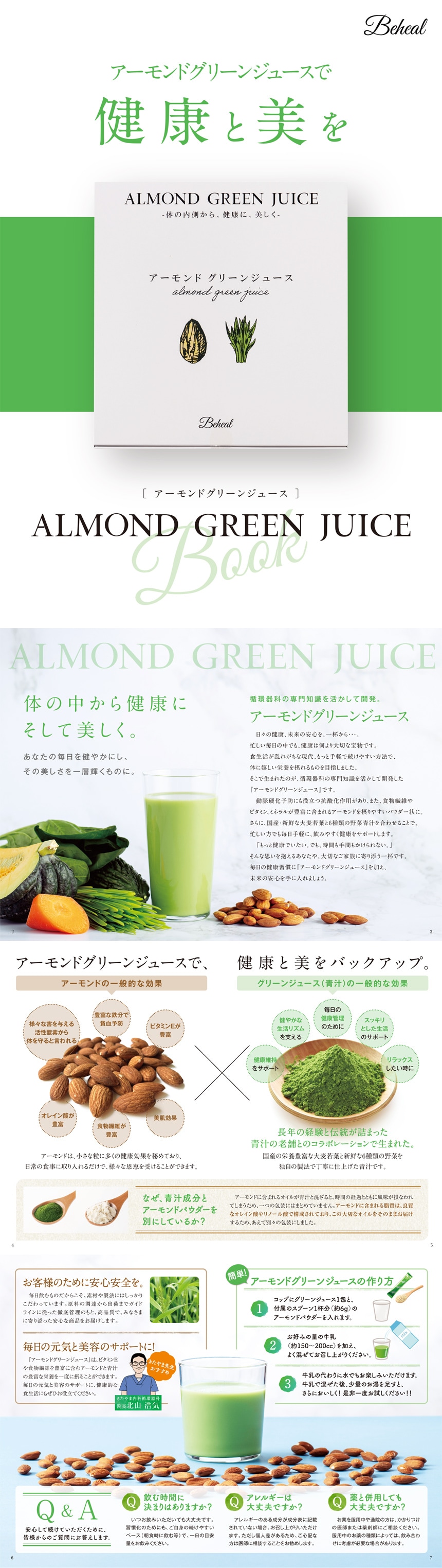 [4個]Beheal アーモンドグリーンジュース 290g | 体の中から美しく 健康に。この製品の開発は、患者さんの声から始まった。