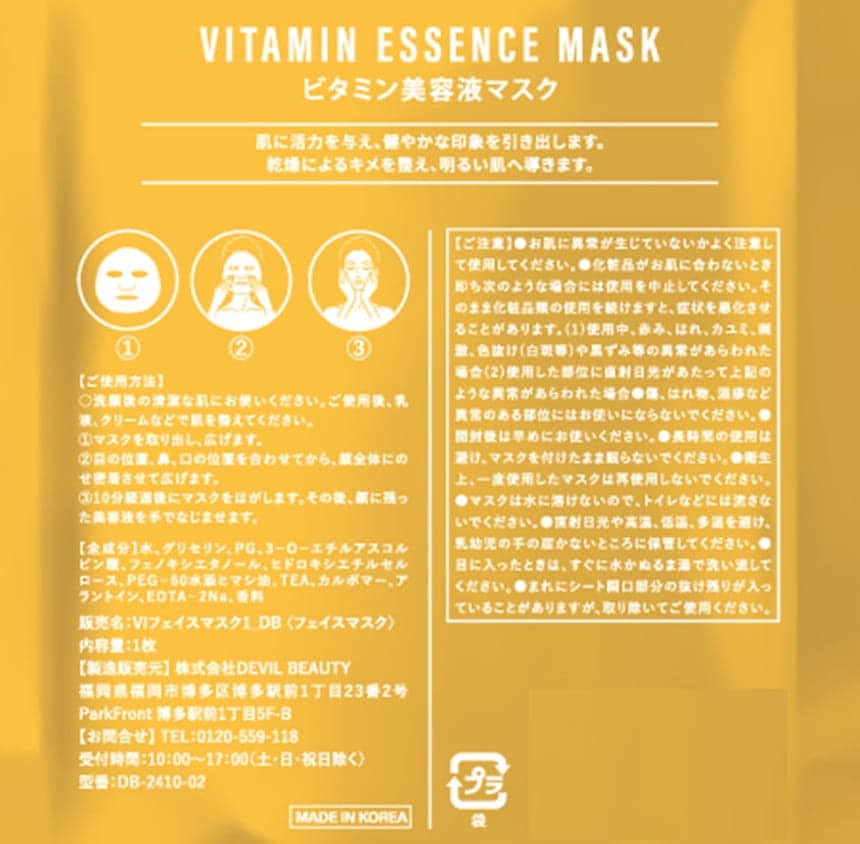 [128枚]東亜製薬 ビタミン美容液マスク 25g | 肌に活力を与え、健やかな印象を引き出します。