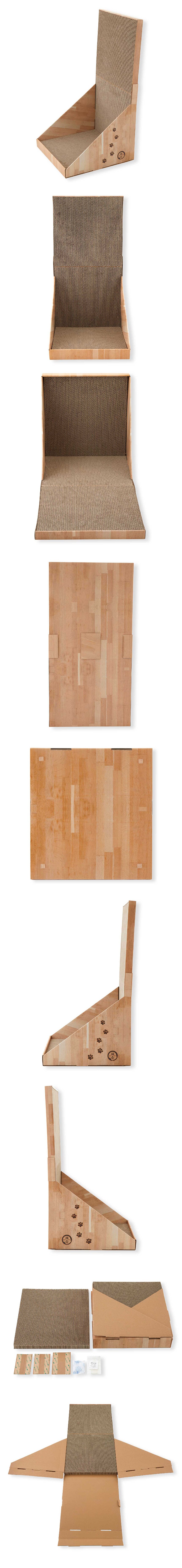 ・原料は100%紙のダンボールを使用。うち10%はニュージーランド産の原パルプ紙を使用。品質の良いダンボールを使用しているので、つめとぎ後のとぎカスも少なくなっています。