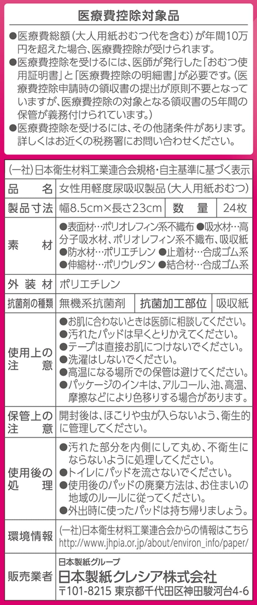 - ポイズ 肌ケアパッド 超スリム&コンパクト 中量用 55cc 24枚入