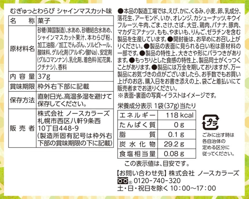 - むぎゅっとわらび シャインマスカット味 37g