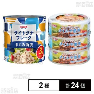 [2種計24個]宝幸 ライトツナフレーク2種セット(まぐろ油漬/オイル不使用まぐろ水煮)