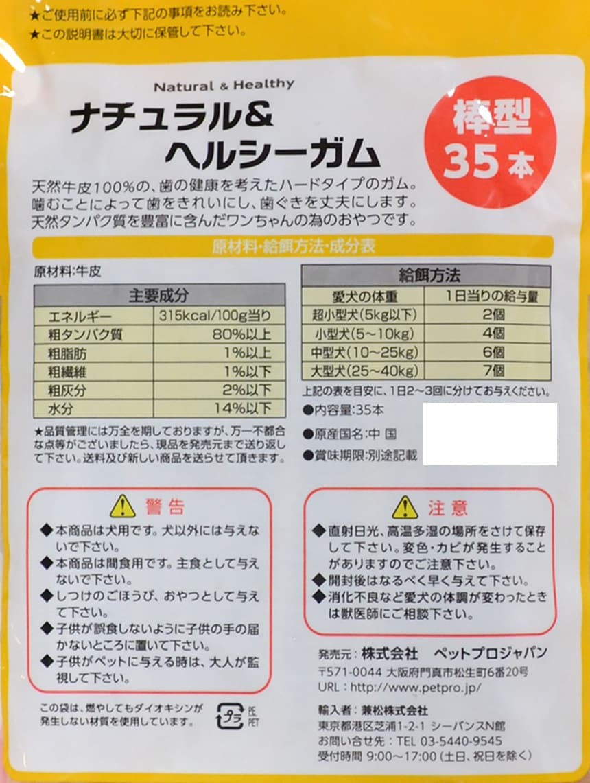 - ペットプロ ナチュラル&ヘルシーガム 棒型 35本入