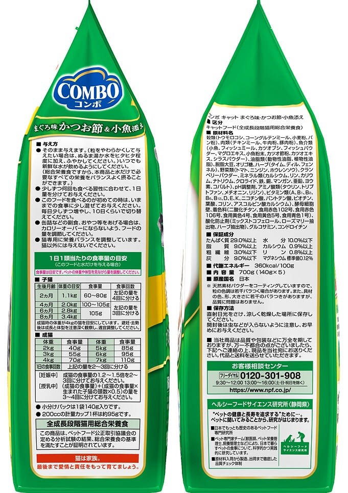 [6個]日本ペットフード コンボ キャット まぐろ味・かつお節・小魚添え 700g(140g×5袋) | おいしさと健康にこだわった猫ちゃん思いのキャットフード!