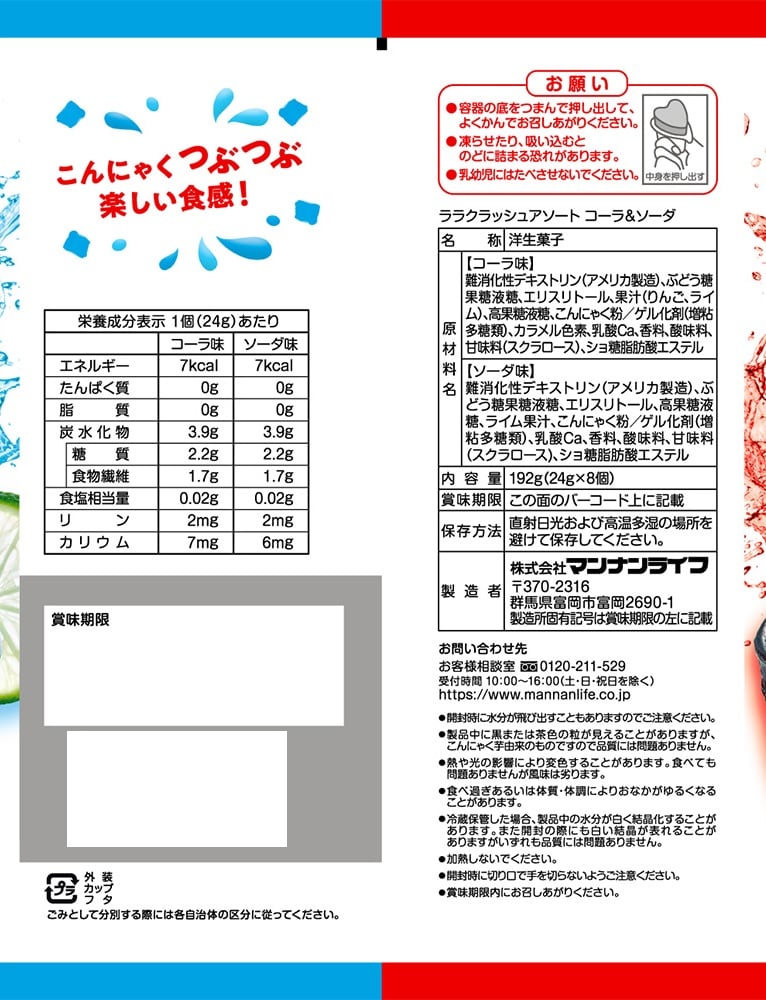 - マンナンライフ ララクラッシュアソート コーラ&ソーダ 24g×8個入×12袋