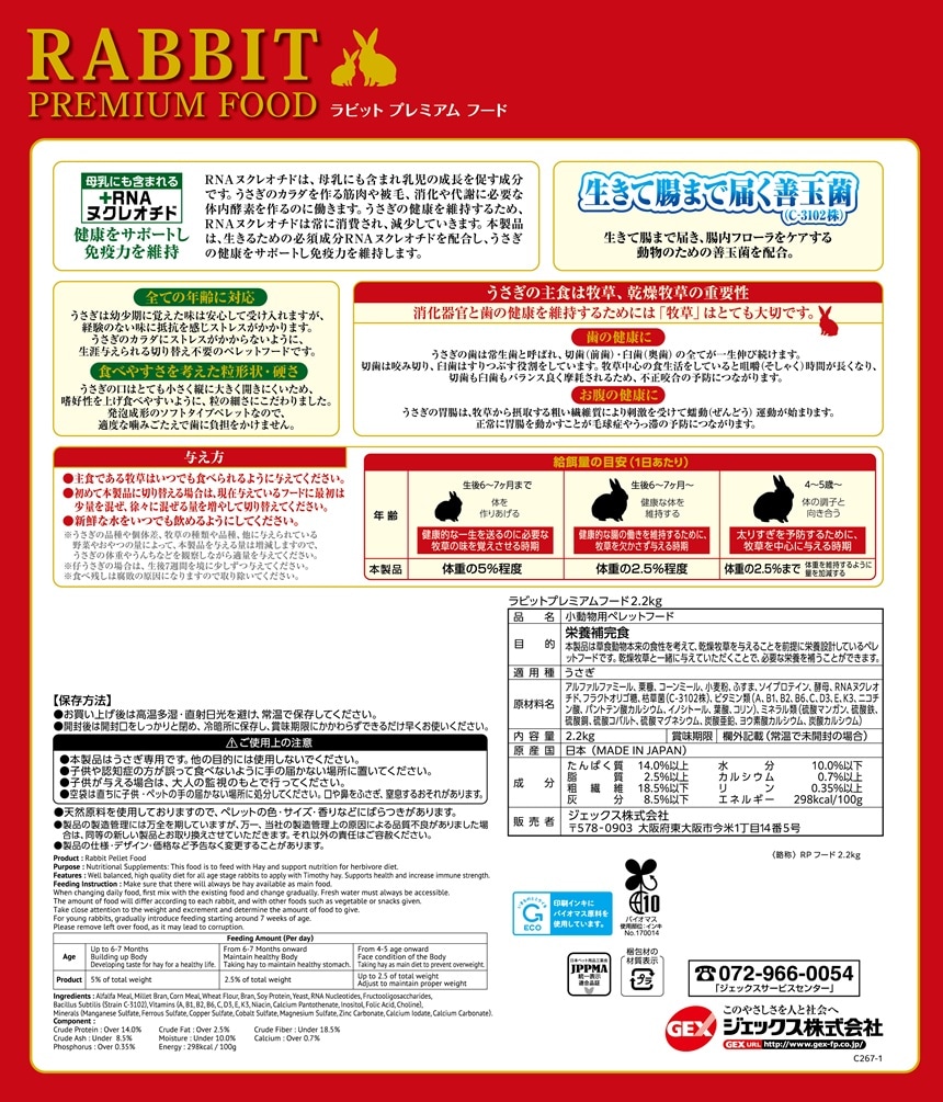 [6個]ジェックス ラビット プレミアムフード 2.2kg | 優れた栄養バランスで免疫力を維持する