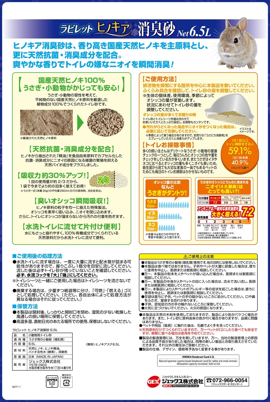 [2個]ジェックス ラビレット ヒノキア消臭砂 6.5L | トイレにも流せる!お掃除も簡単!