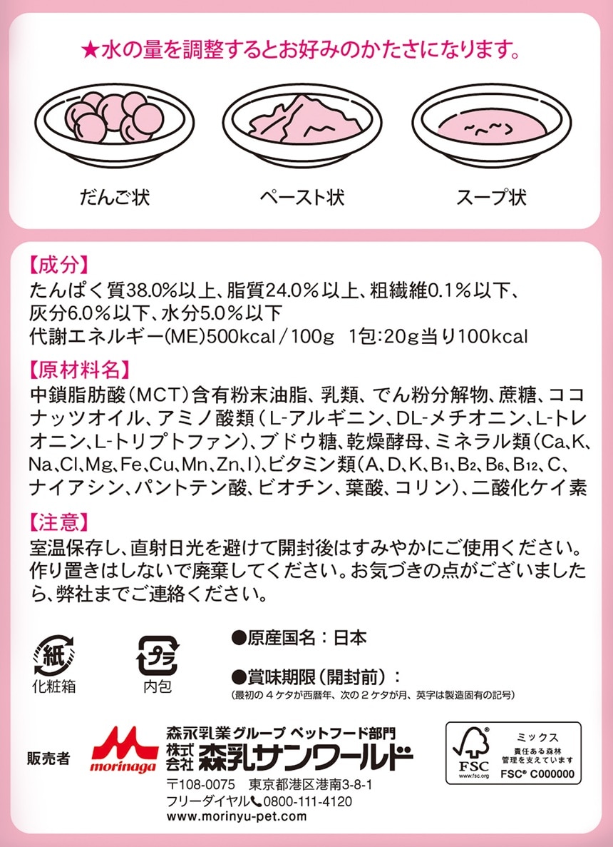 ・高たんぱく・高カロリー・高栄養で易消化性の使いやすい粉末タイプです。