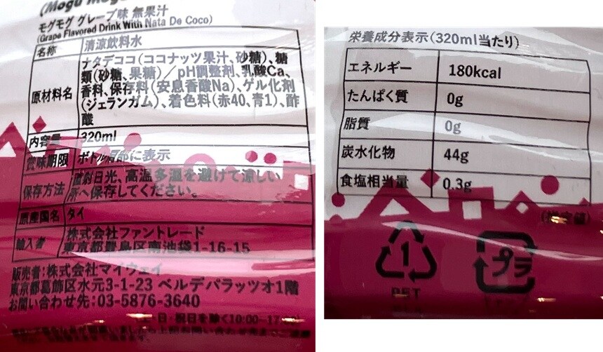 またモグモググレープドリンクは、他のグレープドリンクに比べて無果汁なのに濃く感じるのが特徴です。