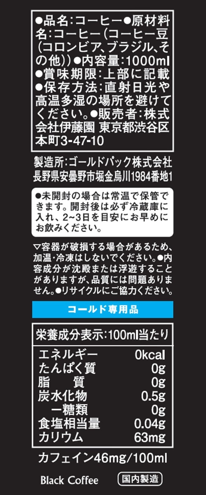 [18本]伊藤園 TULLY’S COFFEE MY HOME BLACK COFFEE 紙パック 屋根型キャップ付容器 1000ml | クリアな飲み心地バランスの良い味わい。