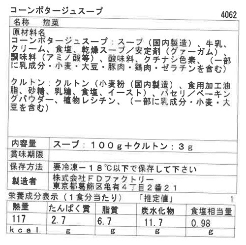 【コーンポタージュスープ】