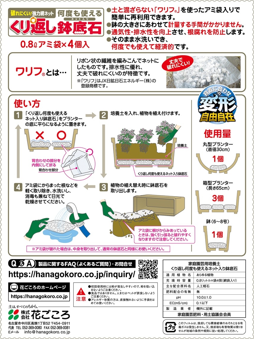 [12個]花ごころ くり返し何度も使える鉢底石 網袋4袋入り | 何度でも繰り返し使える