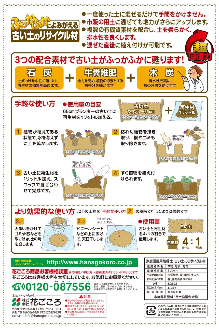 - 花ごころ 古い土のリサイクル材 再生材 5L