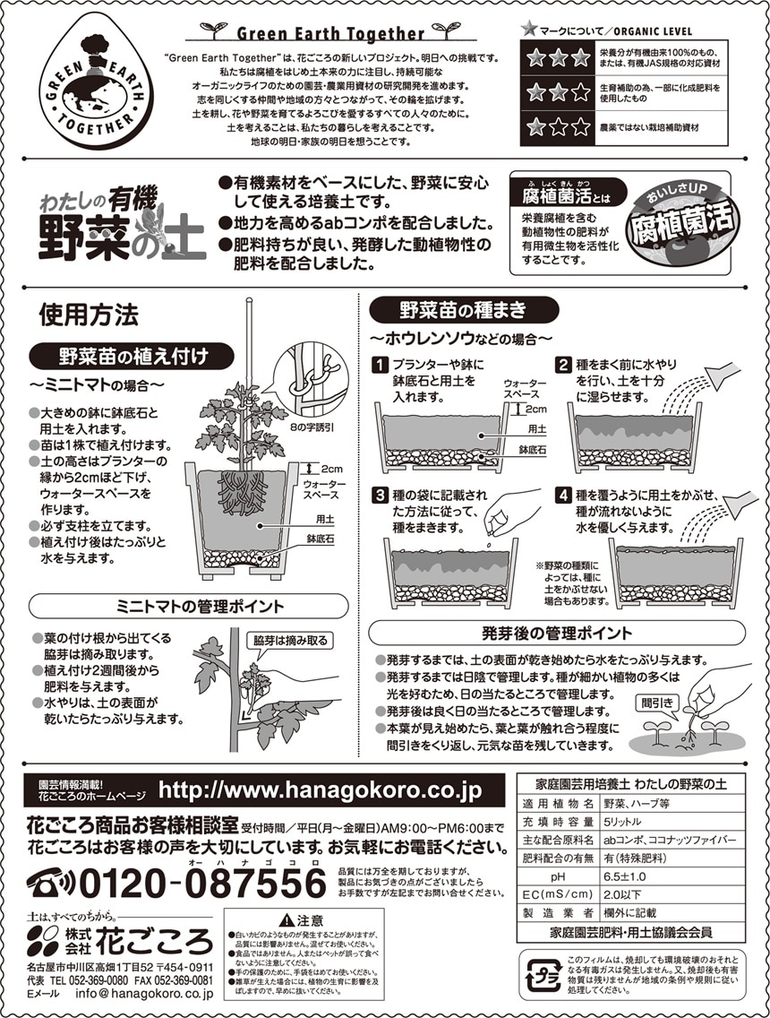 - 花ごころ GREEN EARTH TOGETHER わたしの野菜の土 培養土 5L