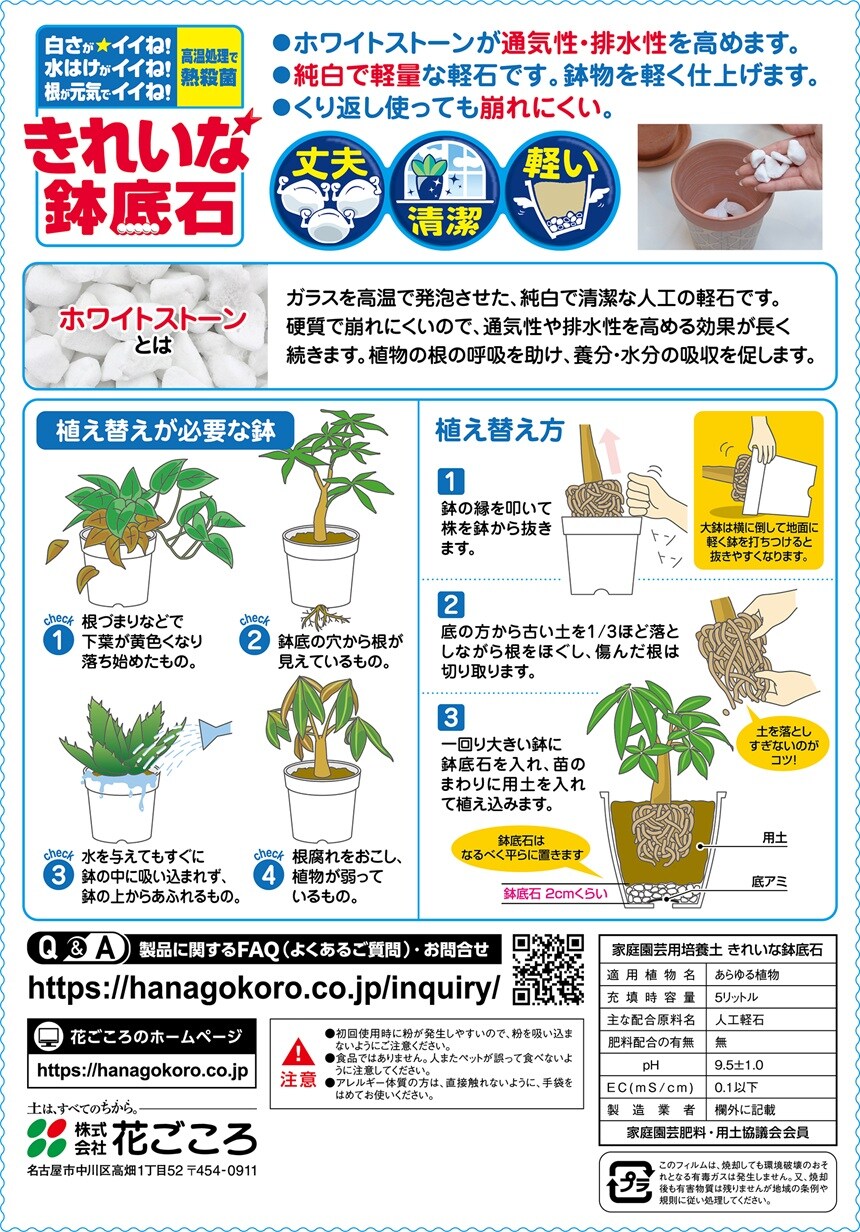 [12個]花ごころ きれいな鉢底石 5L | 純白で軽量な鉢底石