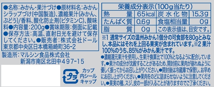 [24個]ドール フルーツカップ 果実まるごとみかん 200g | まるごと1個分の果実使用。100%ジュースで人気の「みかん濃縮果汁」を液部に使用。