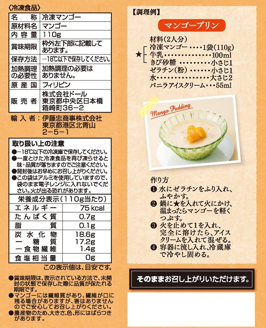 [30個]ドール 冷凍マンゴー 110g | 濃厚でなめらかな甘みが特徴のフィリピン産完熟マンゴーを使用しました。