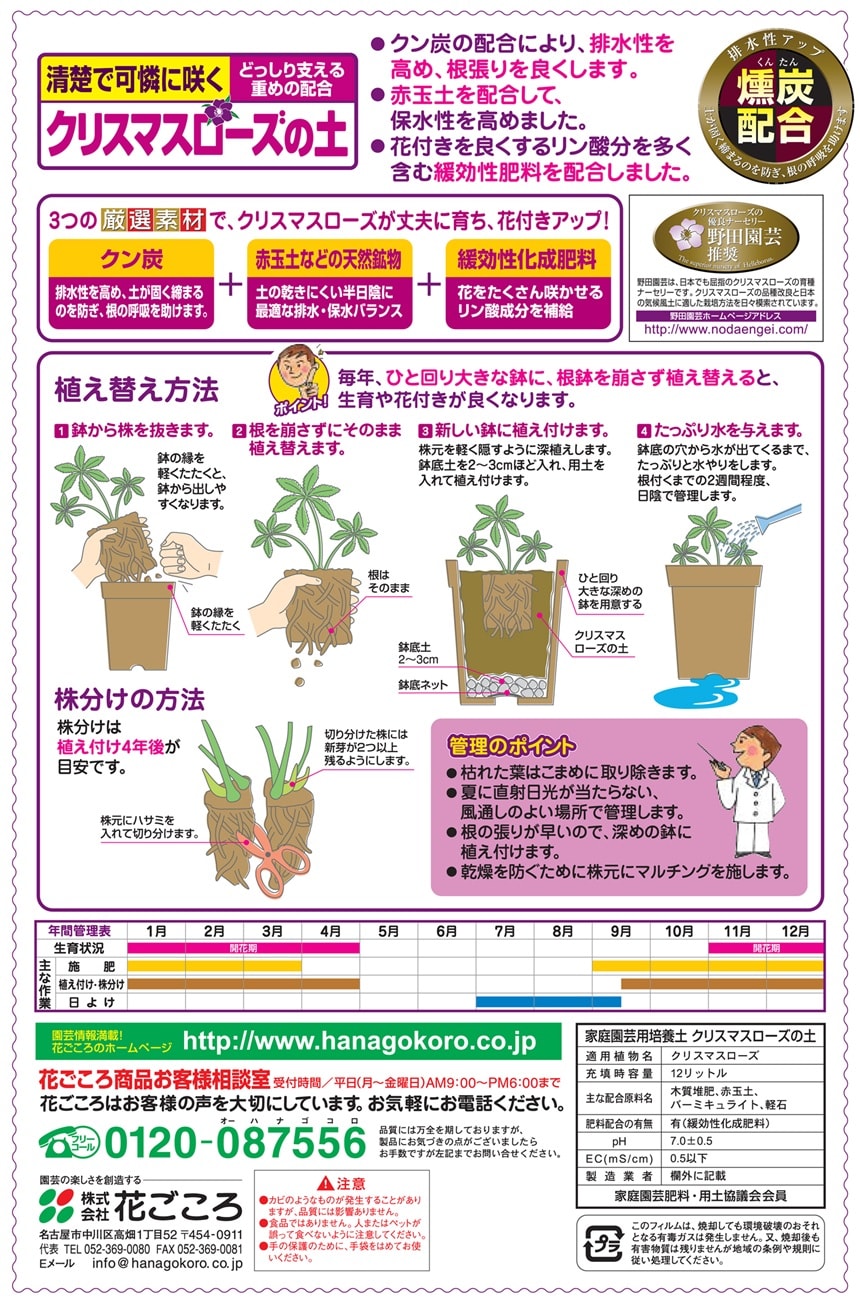 [4個]花ごころ クリスマスローズの土 12L | クリスマスローズに最適な土