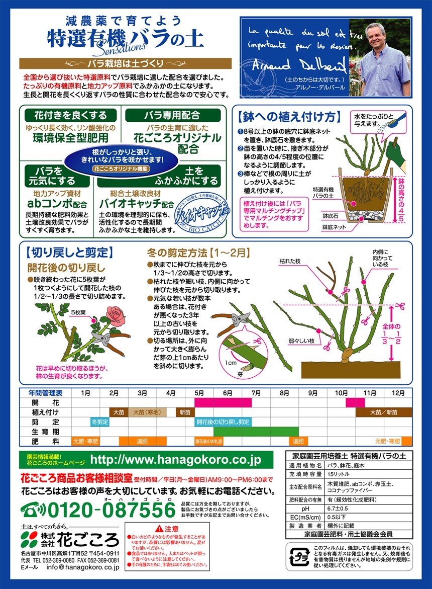全国から選び抜いた特選原料で、バラ栽培に適した配合を作り上げました。