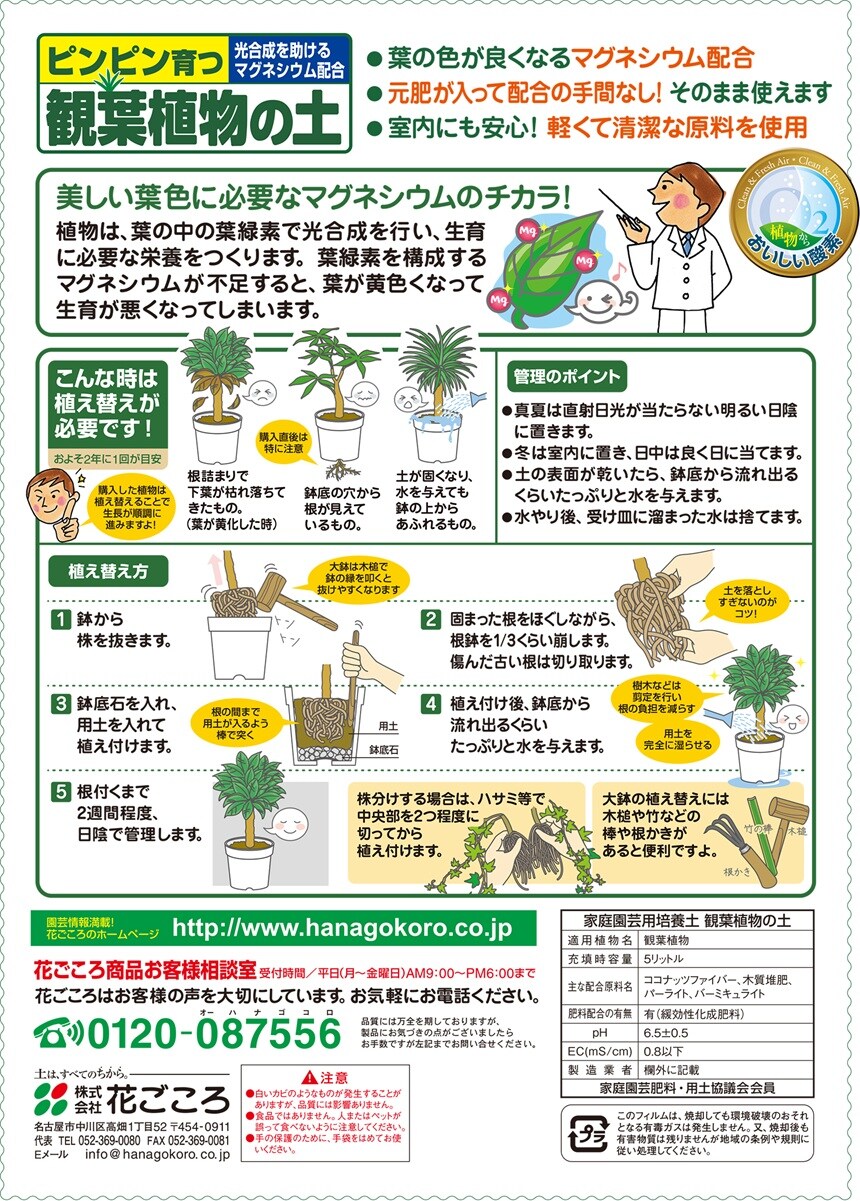 [8個]花ごころ 観葉植物の土 5L | 観葉植物に最適な土