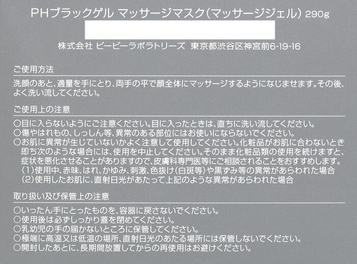 [2個]ビービーラボラトリーズ PH ブラックゲルマッサージマスク 290g | 毛穴の汚れを吸着し、洗い流しやすいさっぱりとした使用感のマッサージゲルです。