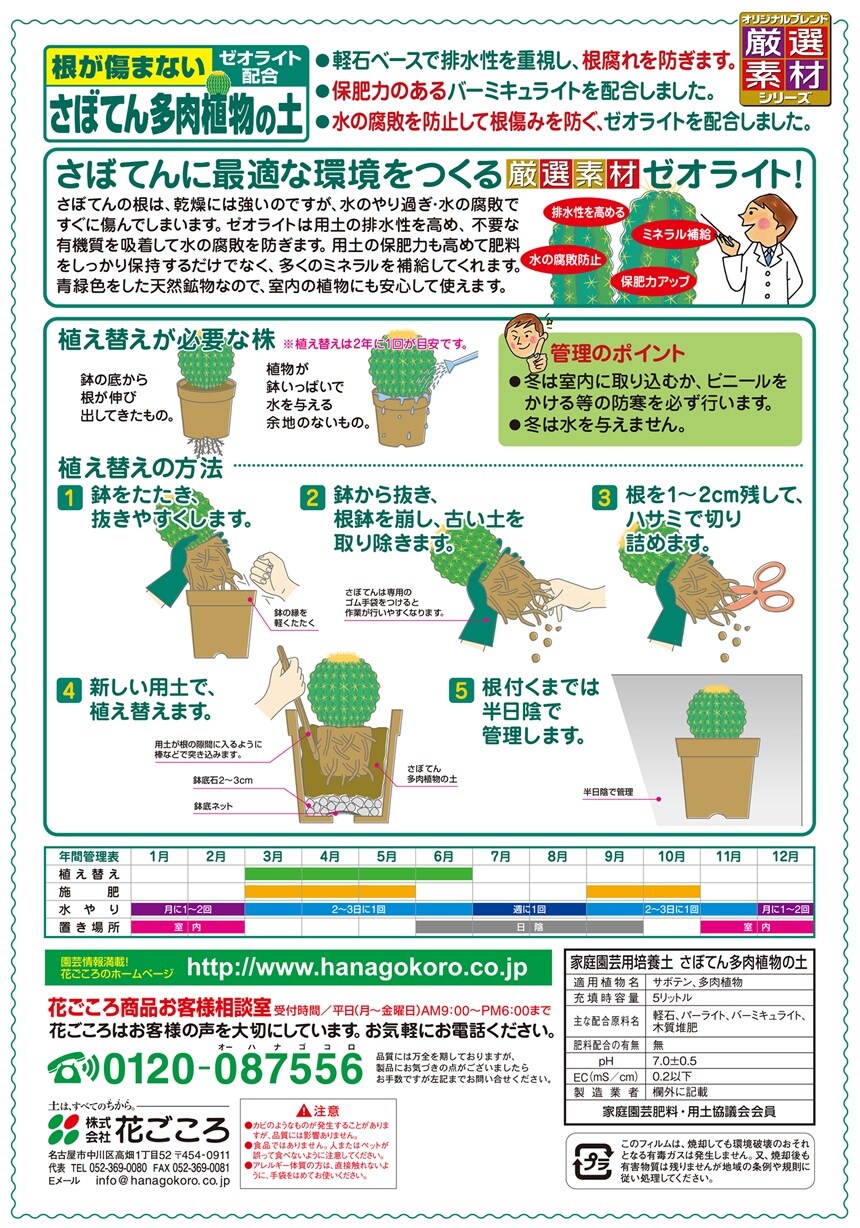 - 花ごころ さぼてん多肉植物の土(細粒) 5L