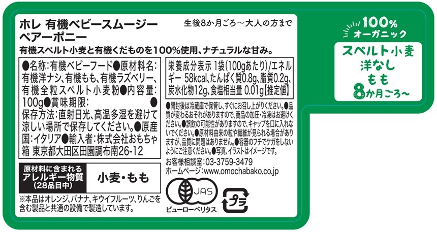 - ホレ 有機ベビースムージー パワーパロット 100g / ペアーポニー 100g