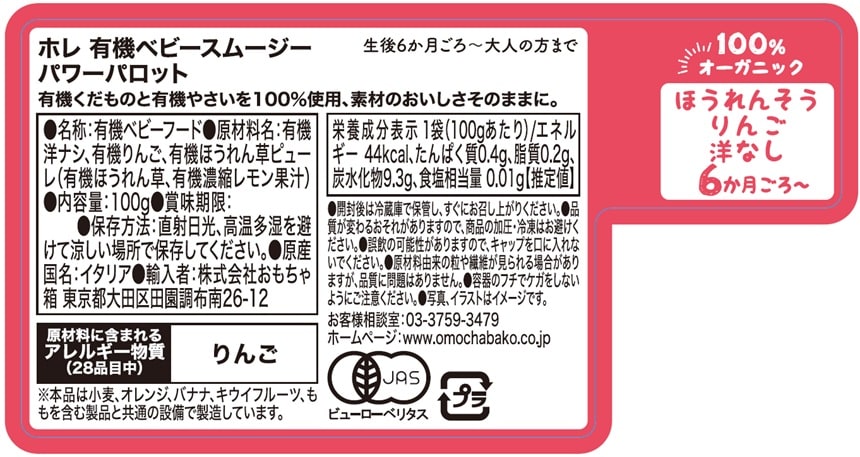 - ・ホレ 有機ベビースムージー パワーパロット 100g×12個