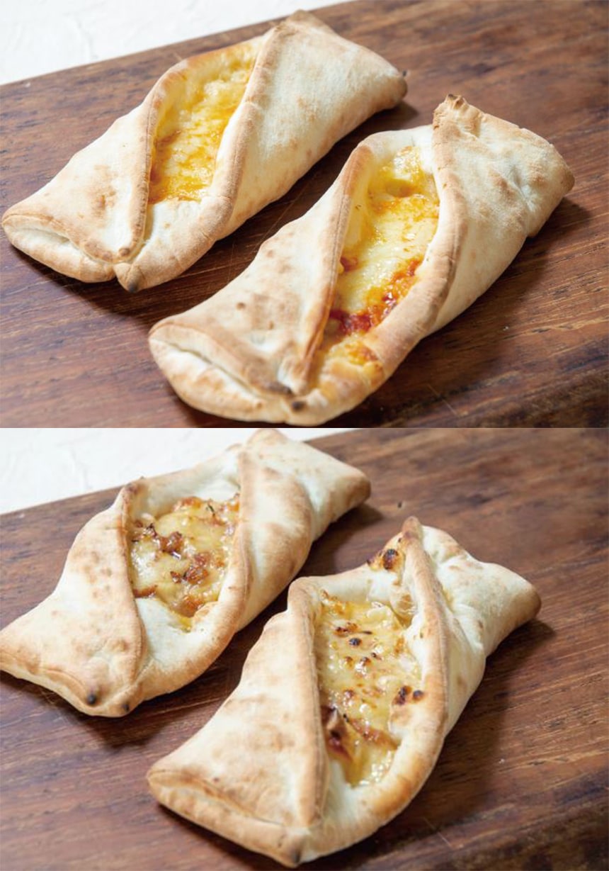 発酵種を使用した生地にトマトソース、チーズ、オレガノをトッピングしたワンハンドピザです。