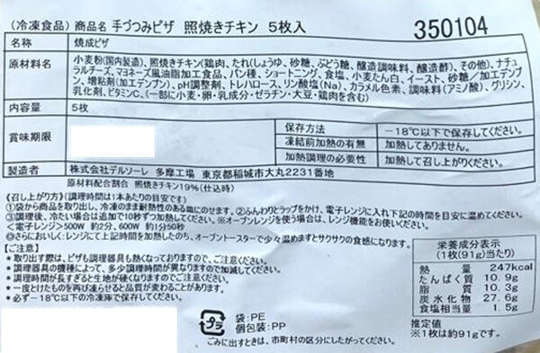 ・手づつみピザ 照焼きチキン 約91g×5枚入(455g)×2袋 - 申込可能個数