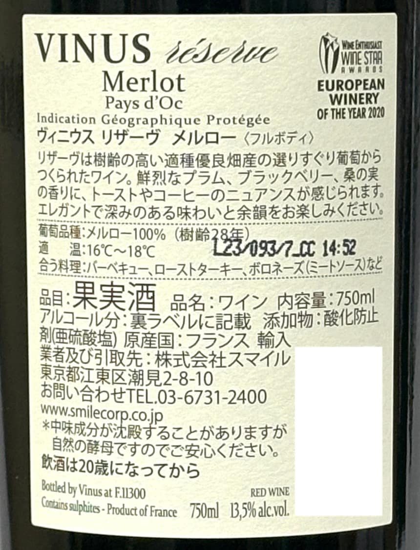 ・ヴィニウス リザーヴ メルロー 750ml×2本