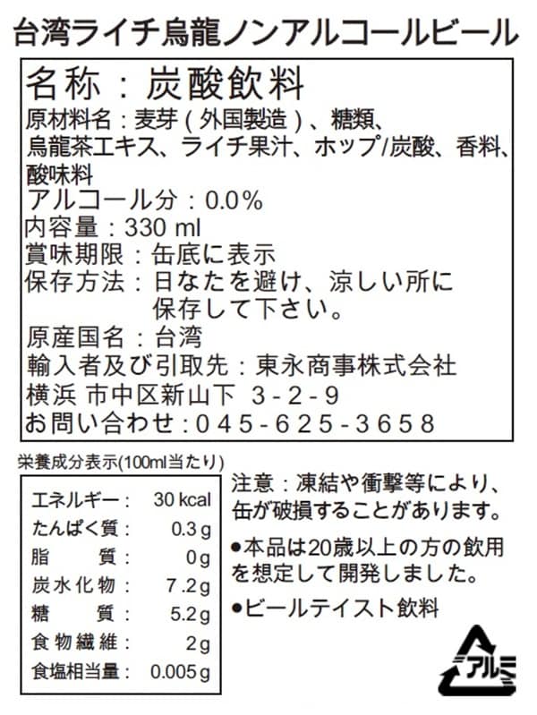 ・台湾ライチウーロン(ノンアルコールビール) 330ml×24本 - 賞味期限