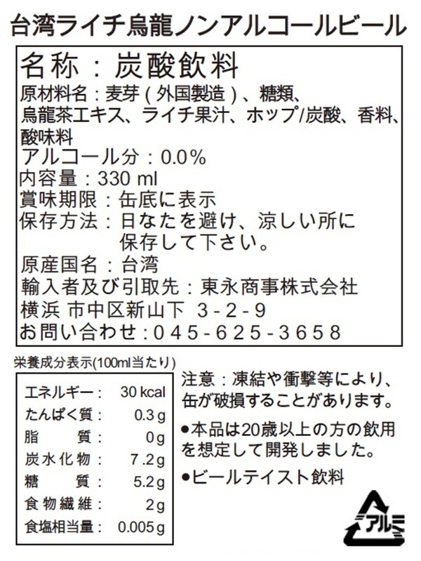 [48本]東永商事 台湾ライチウーロン(ノンアルコールビール) 330ml | 台湾で人気のライチと烏龍茶風味を取り入れたノンアルコールビールです。