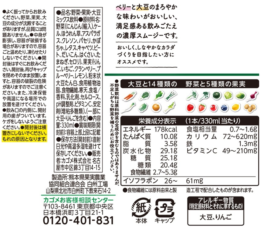 - ・野菜生活100Smoothie SOY PROTEIN ベリー 330ml×12本