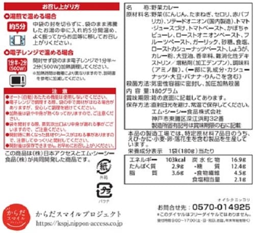 【からだスマイルプロジェクト コクうま6種野菜カレー】