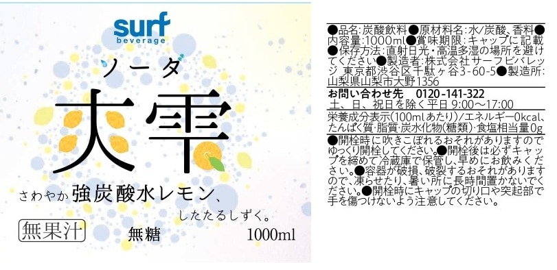 - サーフ 爽雫 強炭酸水レモン 1L