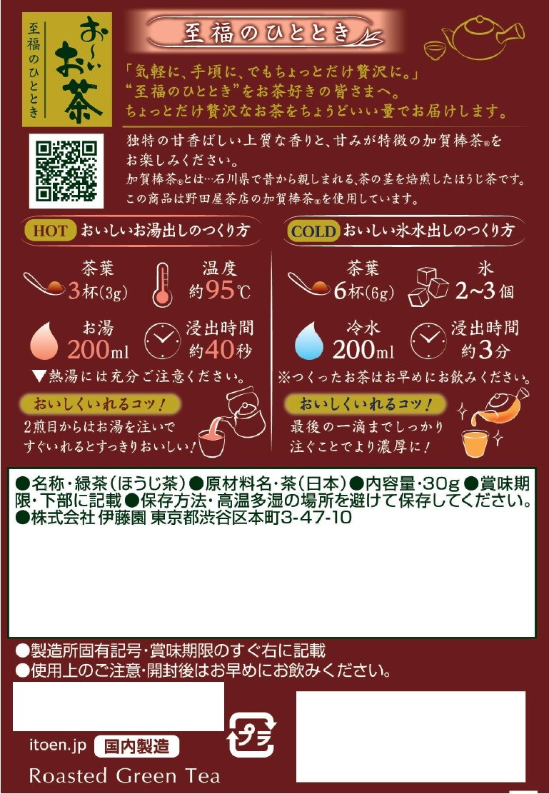 - お~いお茶 至福のひとときふわっと甘い加賀棒茶 30g