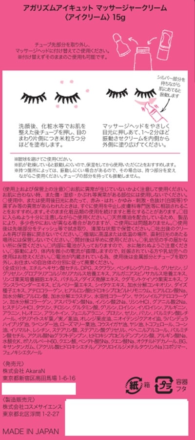 [3個]AkaraN AGARISM アイキュット 15g | 目もと印象がアガる! 美顔器一体型アイクリーム。