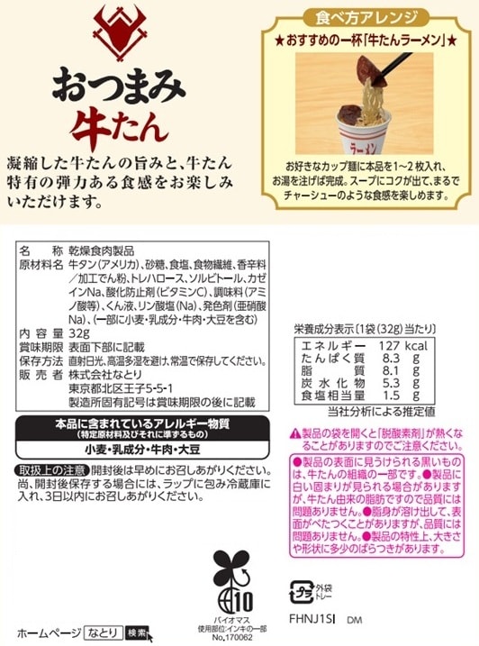 [60袋]なとり おつまみ牛たん 32g | 牛たんの濃厚でジューシーな旨み