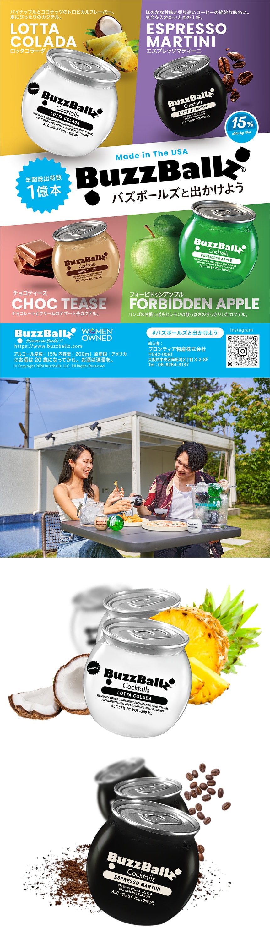 アメリカ発、世界中で大バズり中の新感覚RTD「バズボールズ」。既存のRTDとは違った本格的味わいのカクテルを手軽に味わうことが出来ます。「エスプレッソマティーニ」はコーヒーを使った香り豊かなカクテル。一日の終わりに、あるいは何か気合を入れたいときの一杯に!