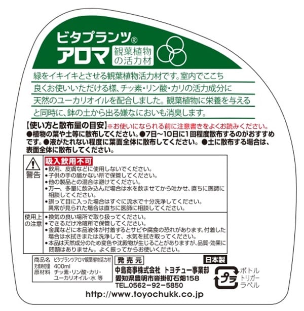 - ビタプランツ アロマ観葉植物活力スプレー 400ml