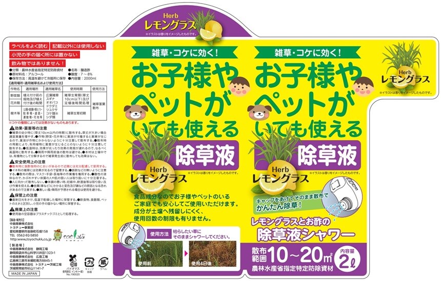 100%食品成分のお酢を使った天然除草液にレモングラスの香りをプラス。