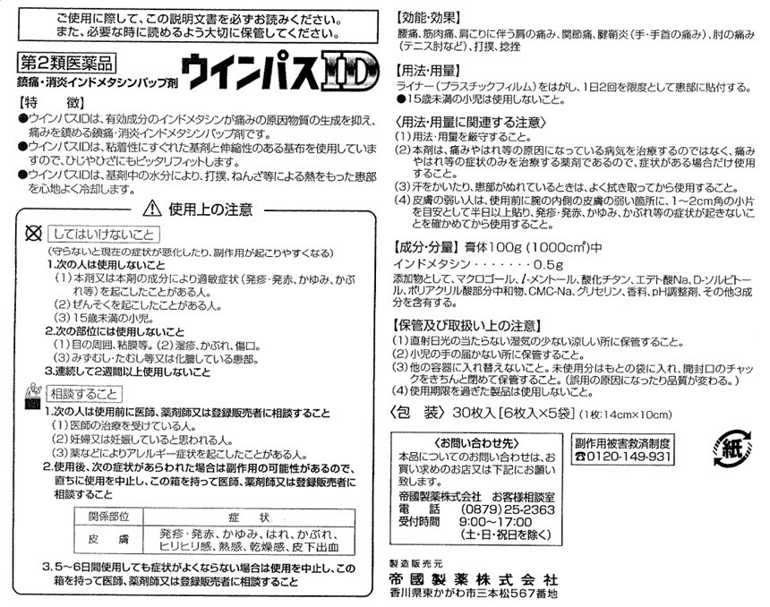 [計90枚]【第2類医薬品】テイコクファルマケア ウインパスID 30枚入×3個 | 腰痛、関節痛、筋肉痛、腱鞘炎などに