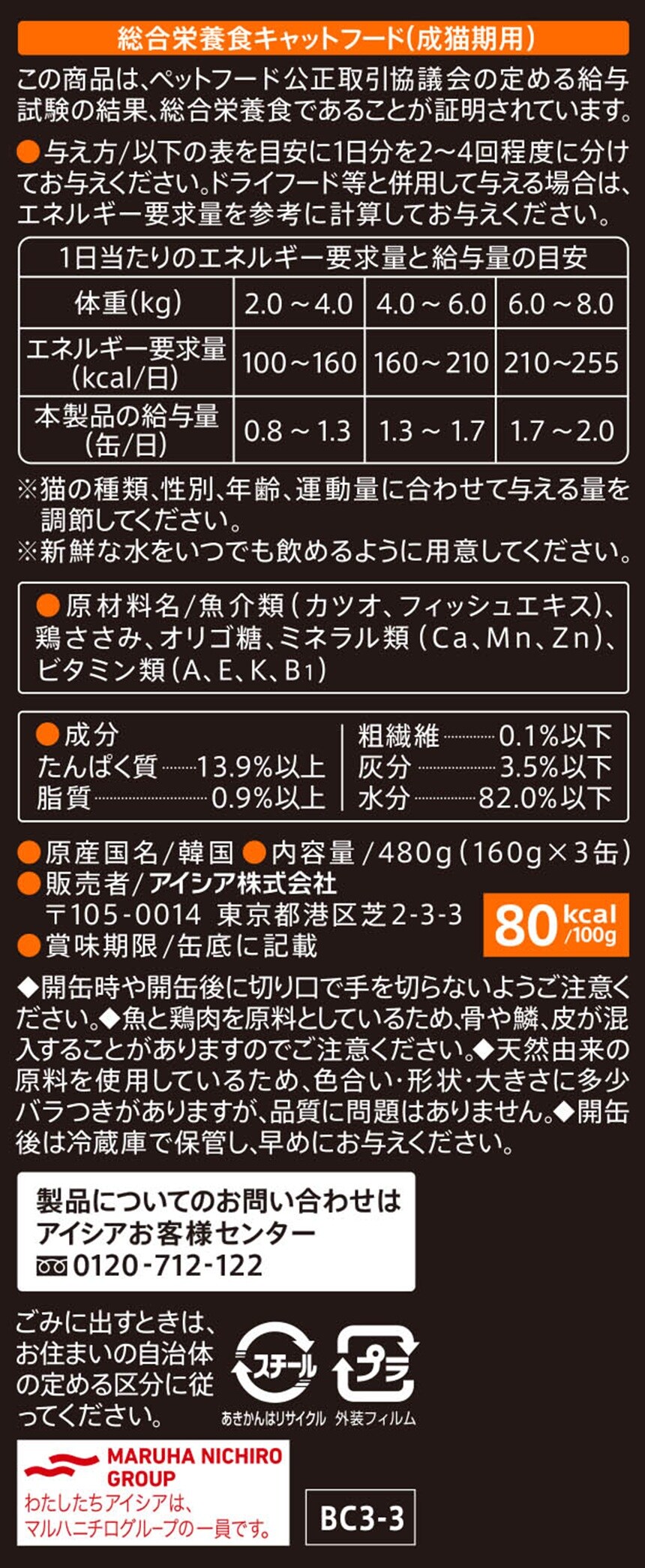 [9個]アイシア 黒缶3P ささみ入りかつお 480g (160g×3パック) | かつおの赤身肉を使用した総合栄養食